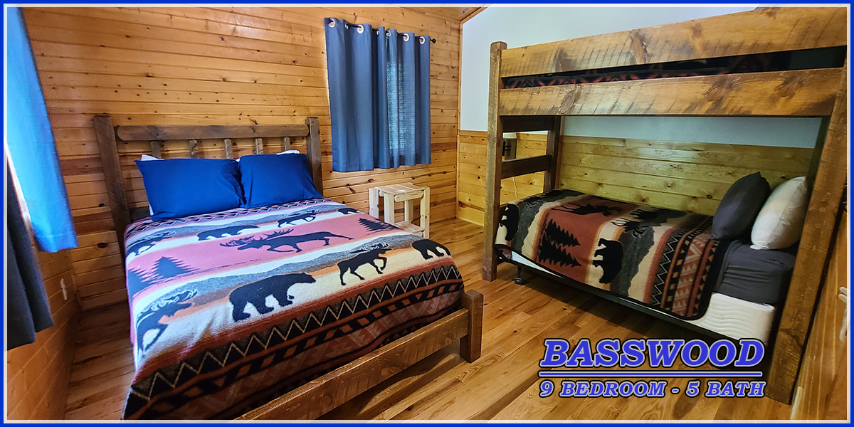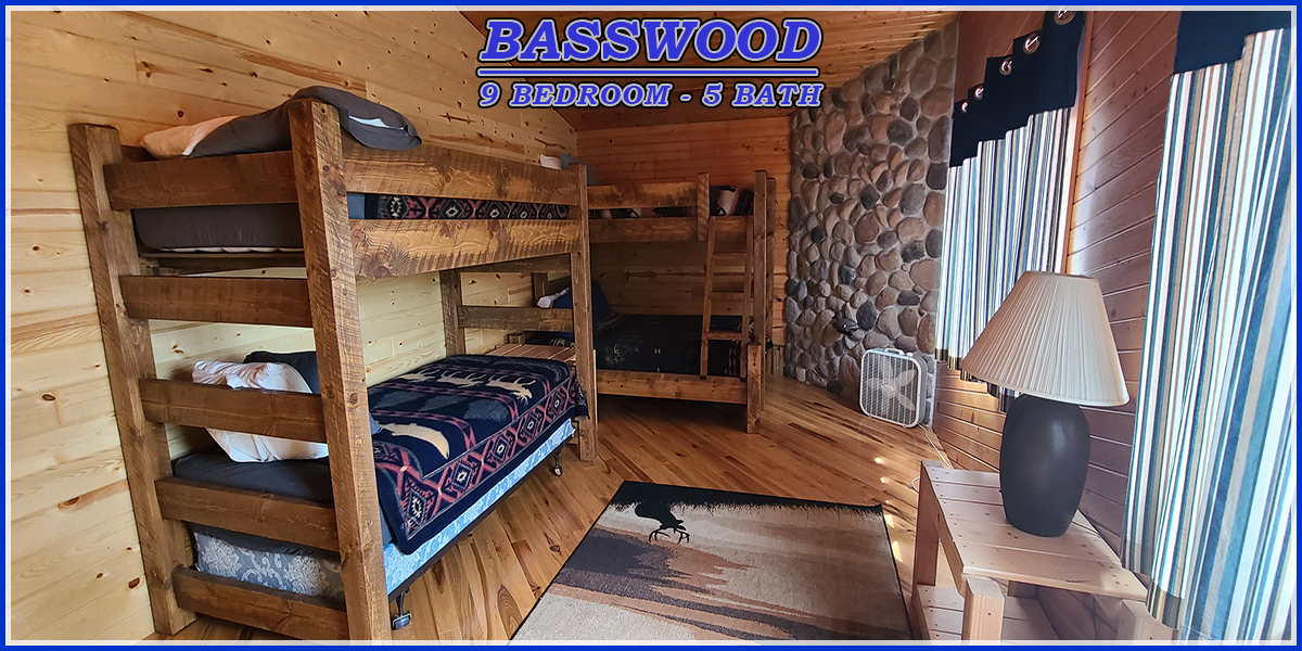 6 Bedroom Lunker Lodge ~ 6 Bedroom Aspen ~ 4 Bedroom Shoreview ~ 4 Bedroom Moosebay ~ 2 Bedroom Rustic Lodge ~ 2 Bedroom Blue Jay