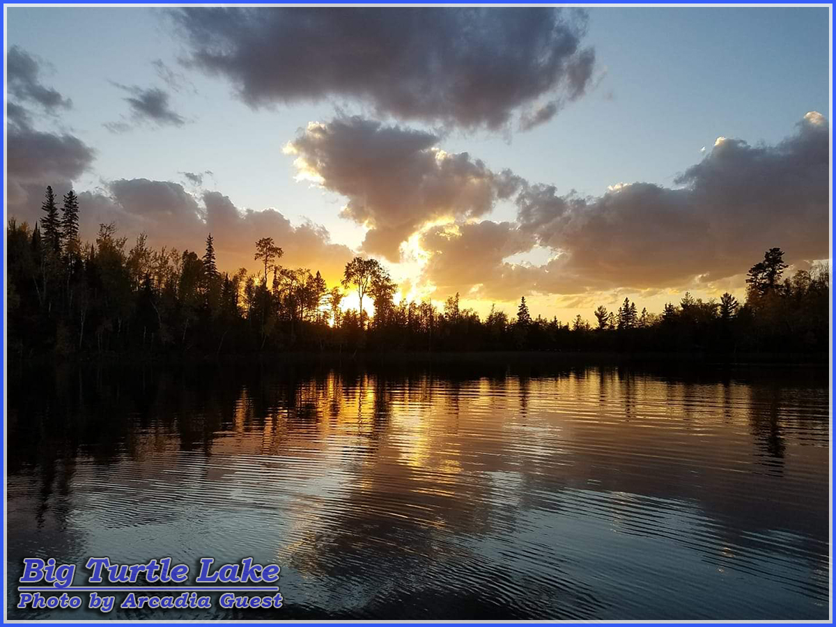 Arcadia Lodge rests on the shores of Big Turtle Lake, home of the "Sky Blue Waters" of MN. Our beautiful lake is just over 2,000 acres in size, has depths of 150' and 21 miles of shoreline. Big Turtle is large enough to spend the week exploring without being so large that you risk getting lost or worrying about rough weather. Fully half of the lake is held within state and federal hands leaving mile after mile of shoreline undeveloped. Secluded coves, numerous bays and islands means you can always find a quiet section of the lake to enjoy all to yourself!