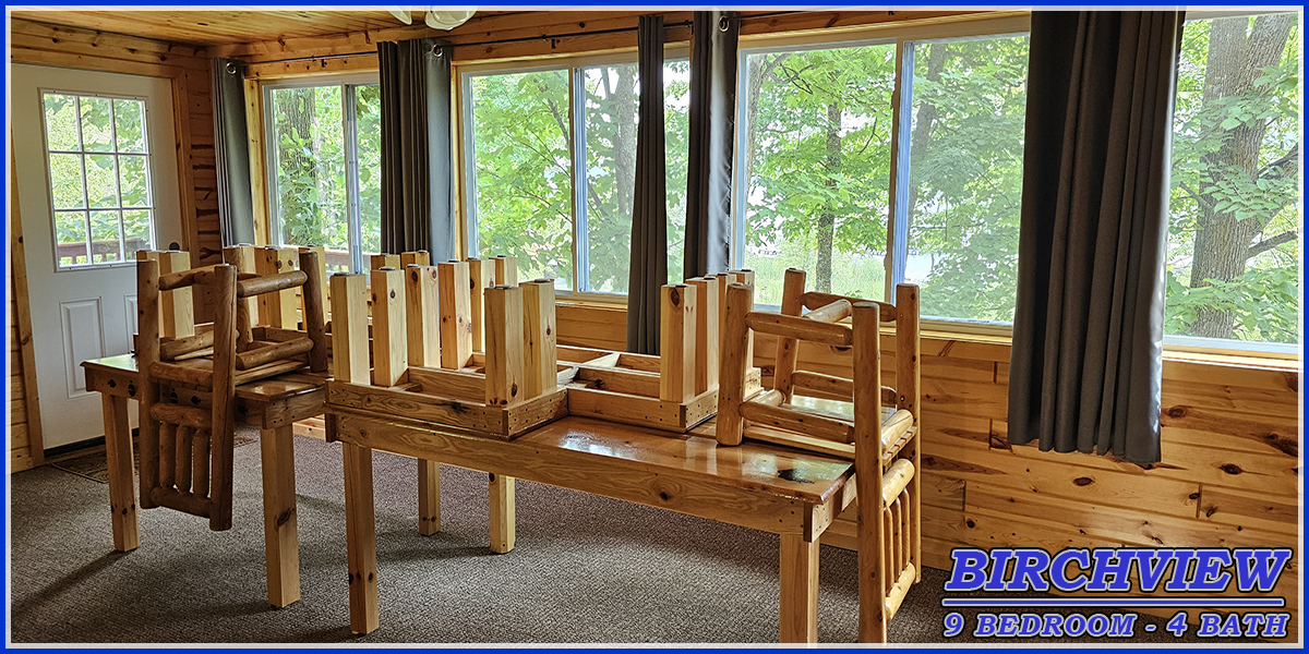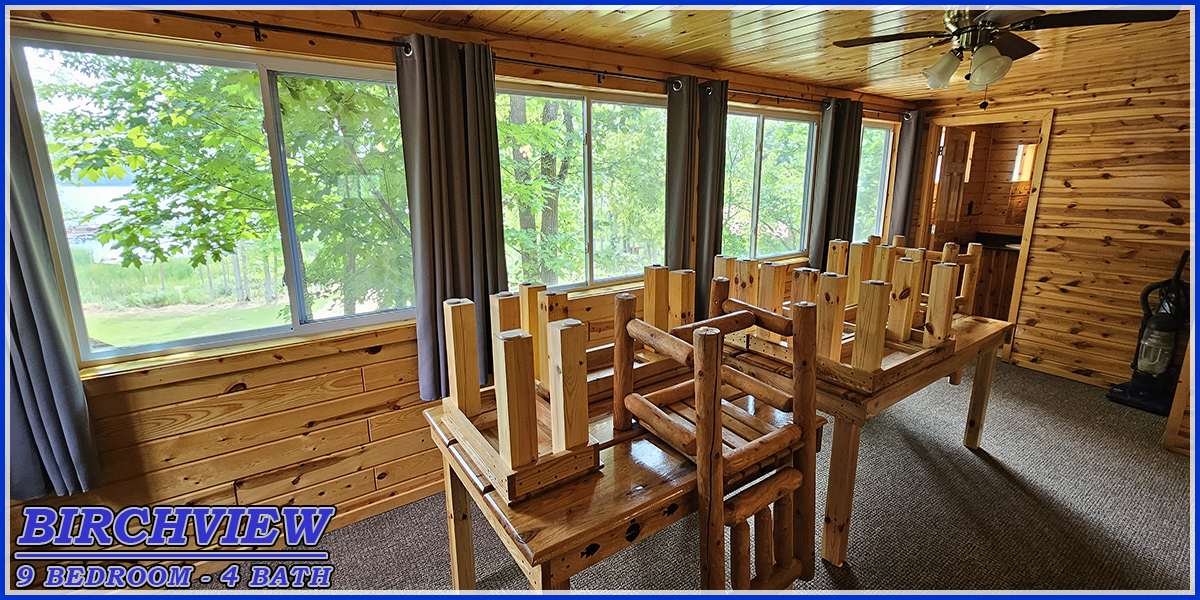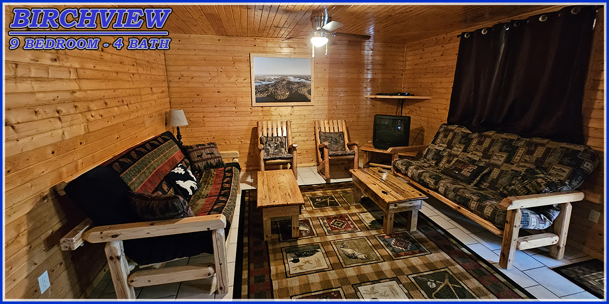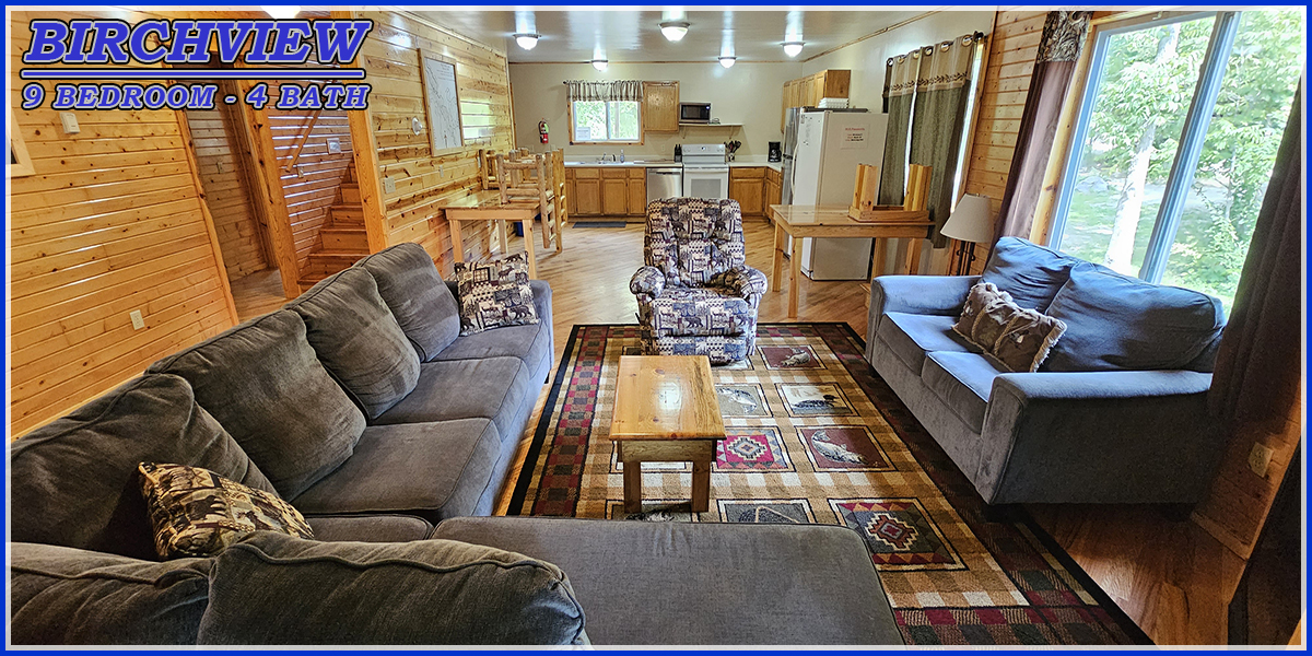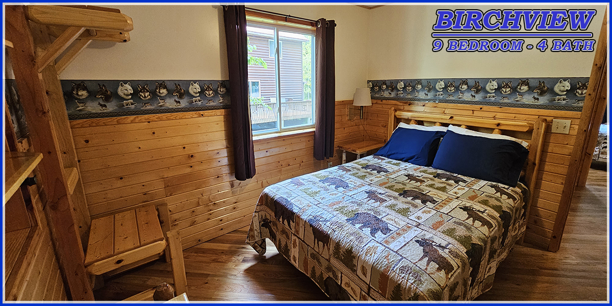 6 Bedroom Lunker Lodge ~ 6 Bedroom Aspen ~ 4 Bedroom Shoreview ~ 4 Bedroom Moosebay ~ 2 Bedroom Rustic Lodge ~ 2 Bedroom Blue Jay