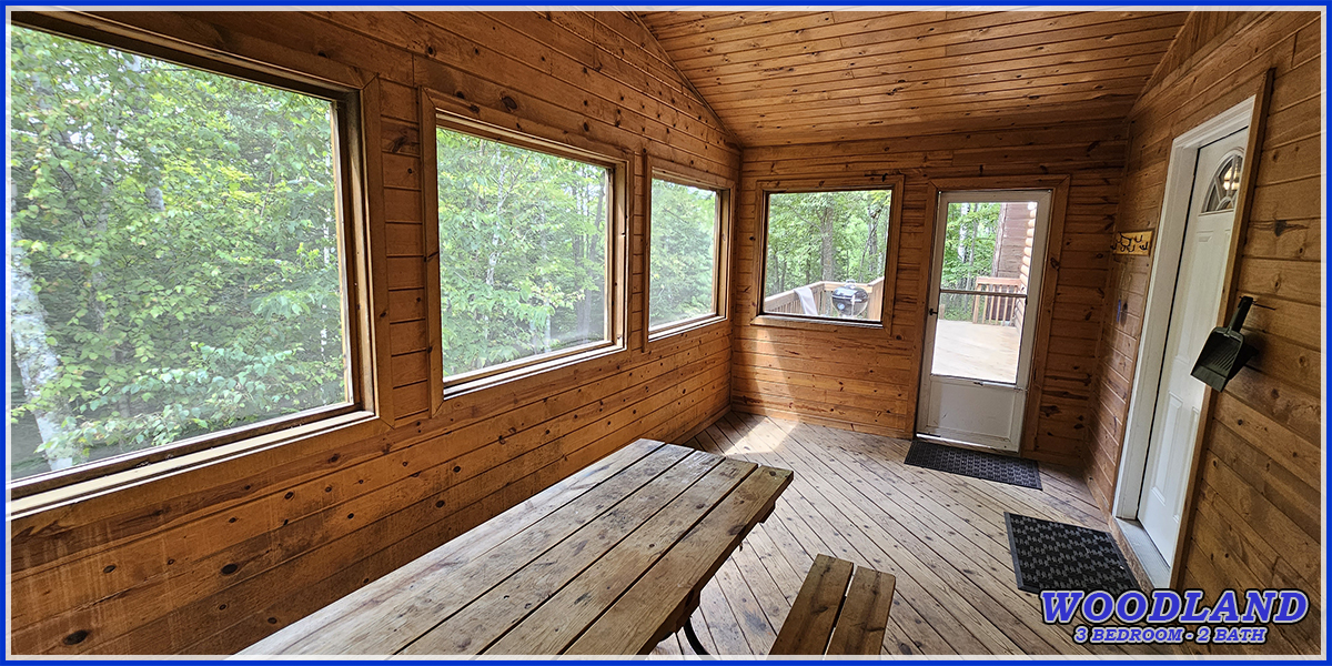 All cabins have charcoal grills and an open deck. Some cabins have a screen porch.